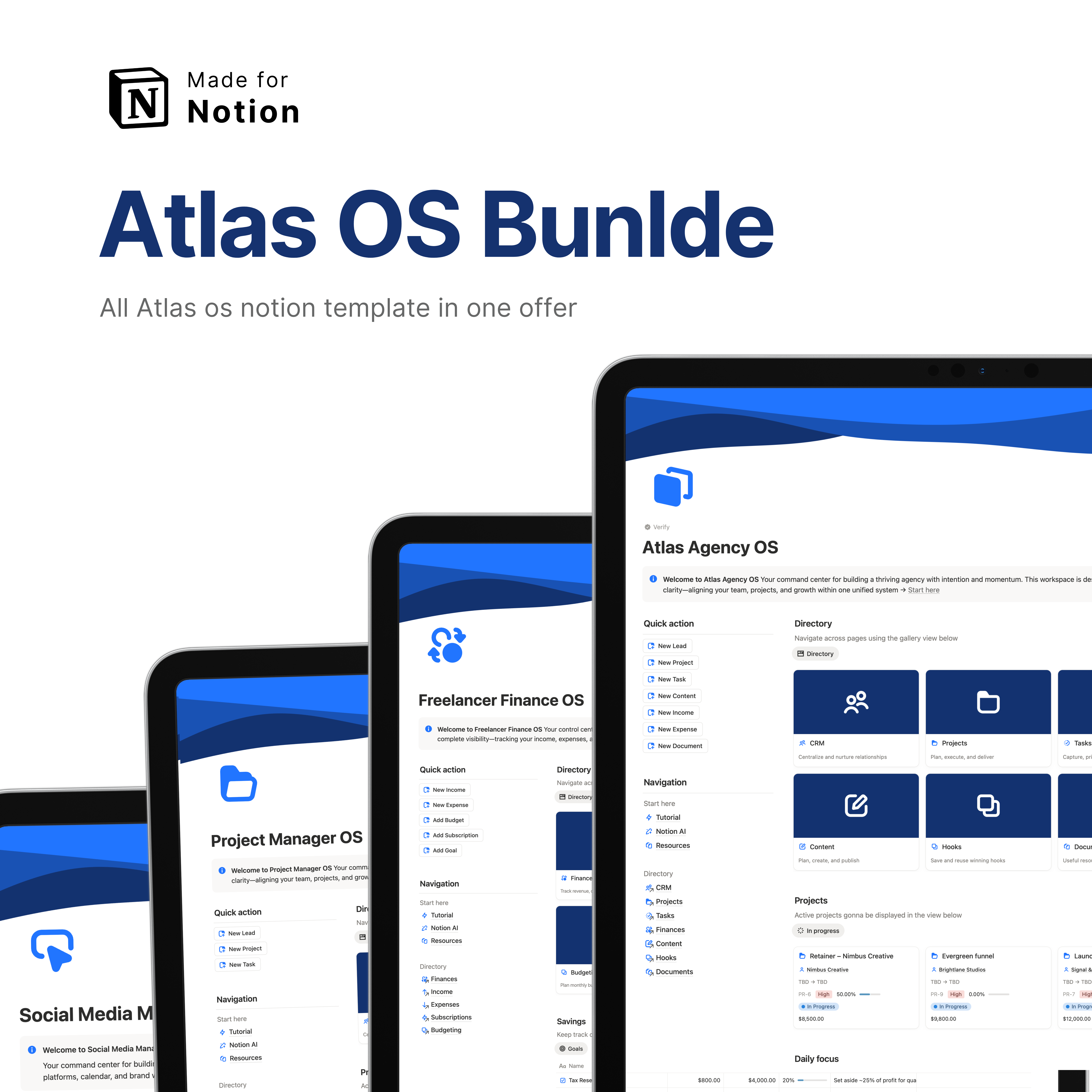 ATLAS SUITE OS is a complete Notion-based operating system designed to run your entire freelance or agency business—from clients and projects to execution, finances, and delivery—in one structured system. It replaces scattered tools, spreadsheets, and disconnected workflows with a single source of truth built for clarity, focus, and scalable execution. This is not a collection of templates. It’s a unified business operating system designed to help you work with control, consistency, and confidence.